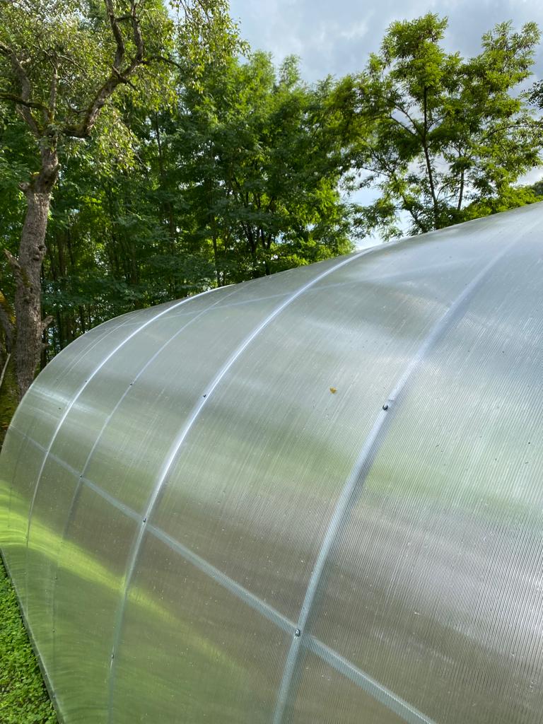 Poli carbonatul folosit este transparent oferind lumina necesara plantelor , are pereți dubli cu grosime de 4 mm menține temperatura in interiorul serei , este solid si tratat împotriva razelor UV , are o durata de viată de minim 10 ani . Temperaturi suportate – 50 +50 grade Celsius . In comparație cu sticla poli carbonatul are calități superioare : păstrează de 5 ori mai bine temperatura , are rezistenta mărita la grindina si este ignifug .