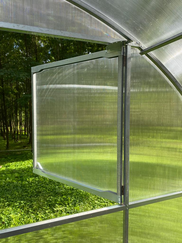 Fereastra tip trapa. La serele cu lungimi mai mari suplimentar pentru o mai buna aerisire se pot instala ferestre . Această fereastră se montează la final după instalarea serei sau oricând se dorește .